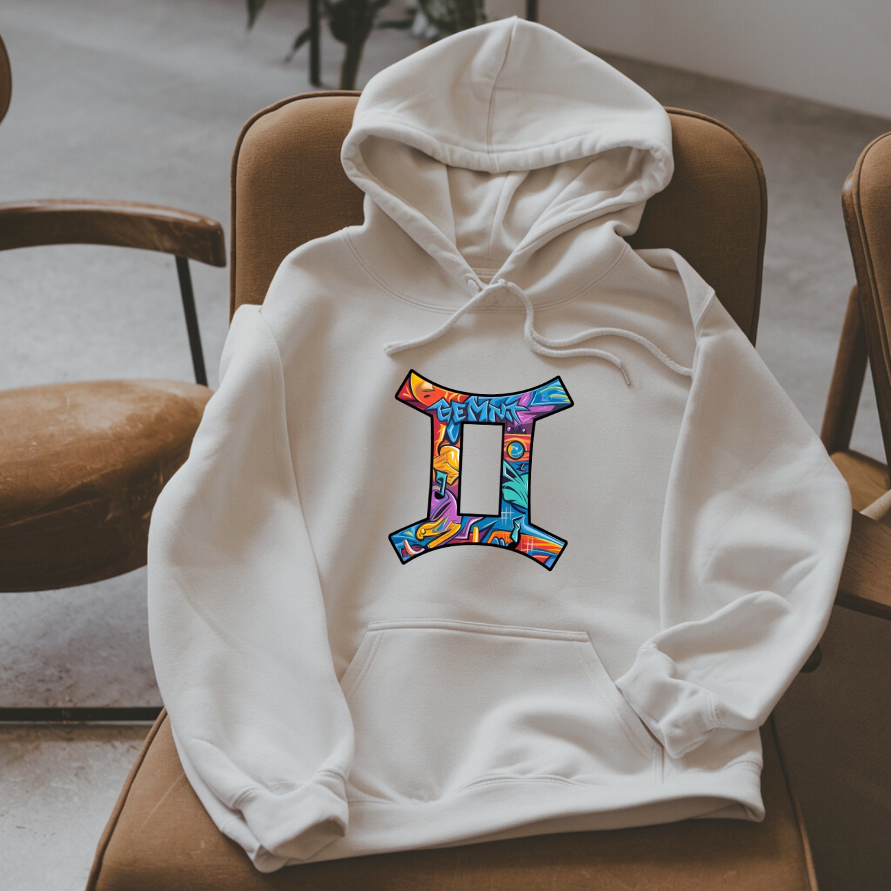 Wyróżnij się w tłumie dzięki oryginalnej bluzie z symbolem Bliźniąt w artystycznym stylu graffiti!