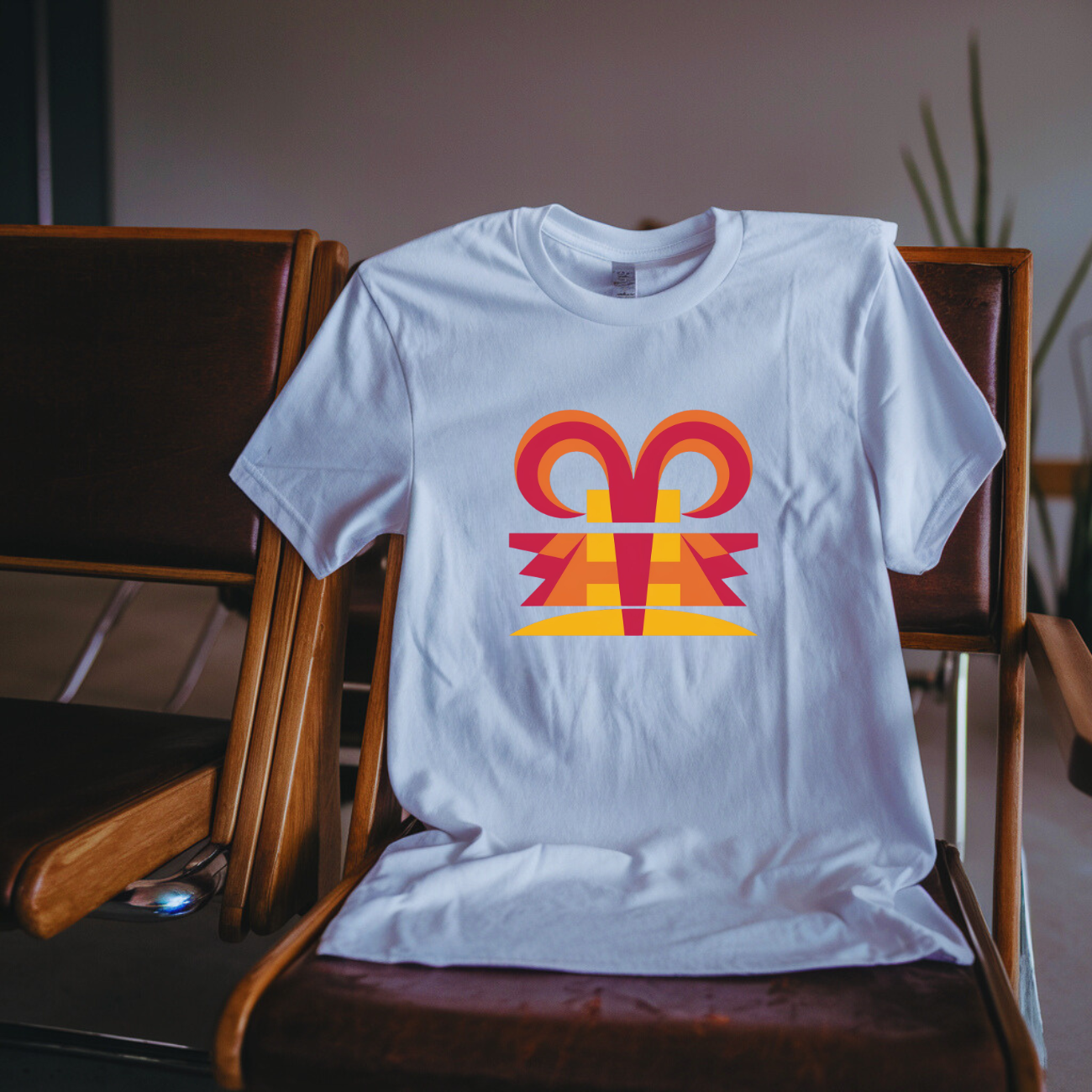 Koszulka z oryginalnym, kolorowym nadrukiem inspirowanym astrologią. Grafika przedstawia nowoczesną interpretację znaku zodiaku Barana w żywych odcieniach czerwieni, pomarańczu i żółci, co nadaje koszulce wyjątkowy, energetyczny charakter.